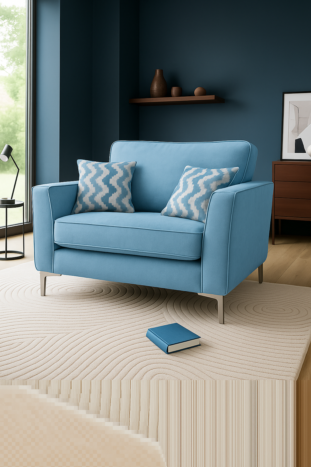 Quinn Spira 2 Seater Curved Designer Navy Blue Fabric Sofa For Old People