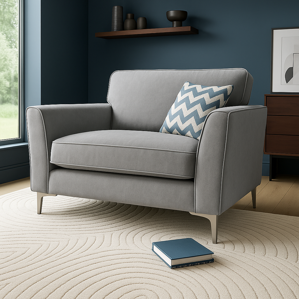 Parma Handmade Armchair In Monaco Grey Fabric With Steel Legs