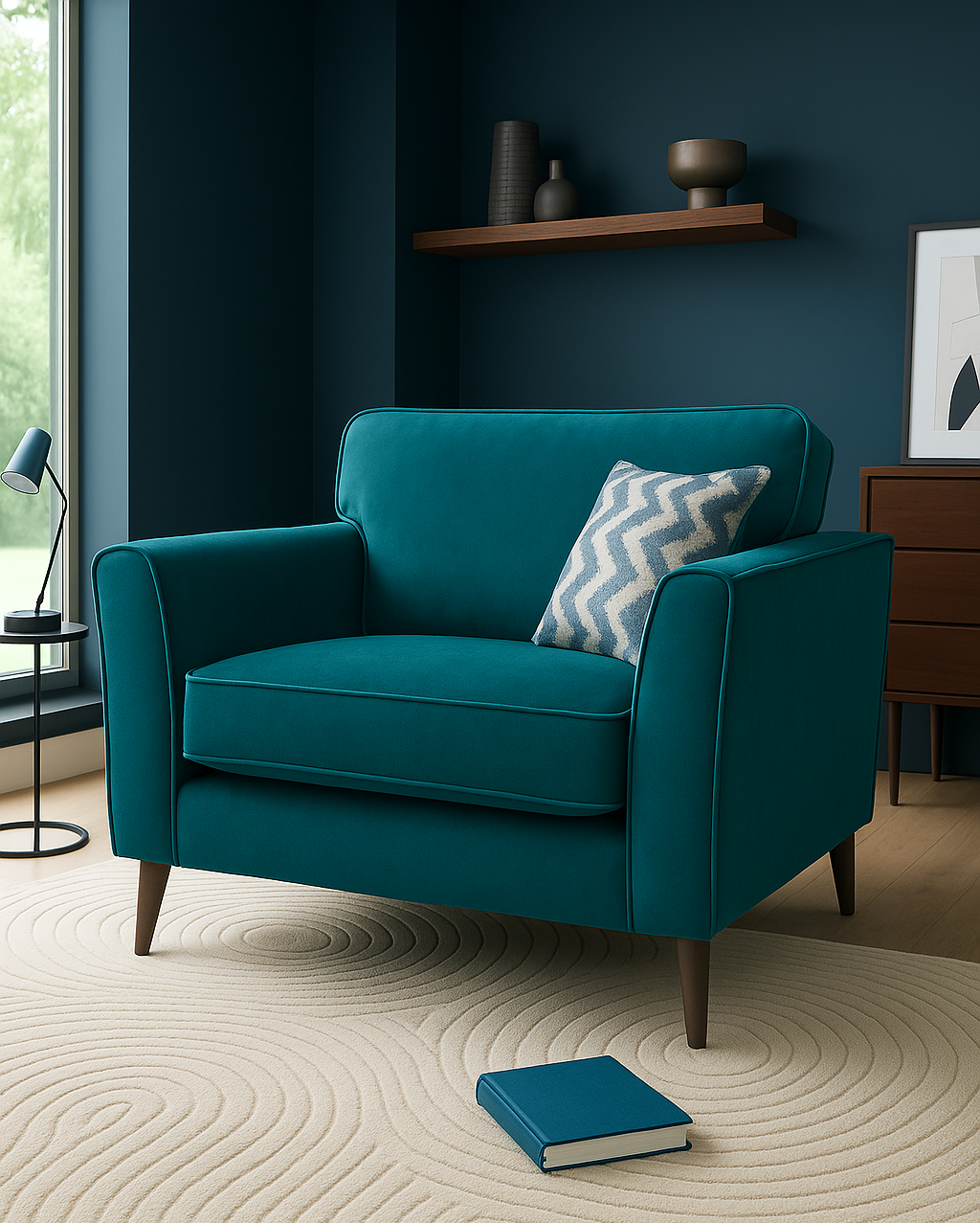 Quinn Spira Armchair Curved Designer In Navy Blue Fabric For Old People