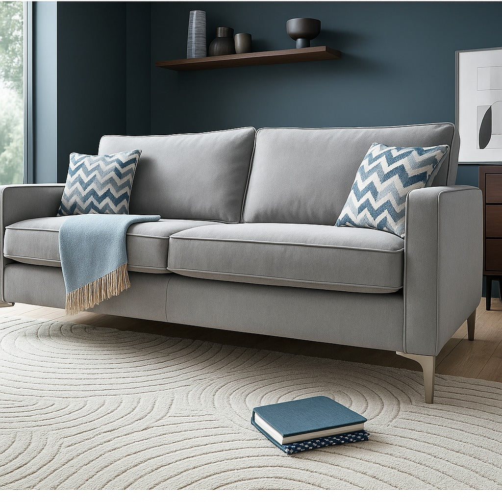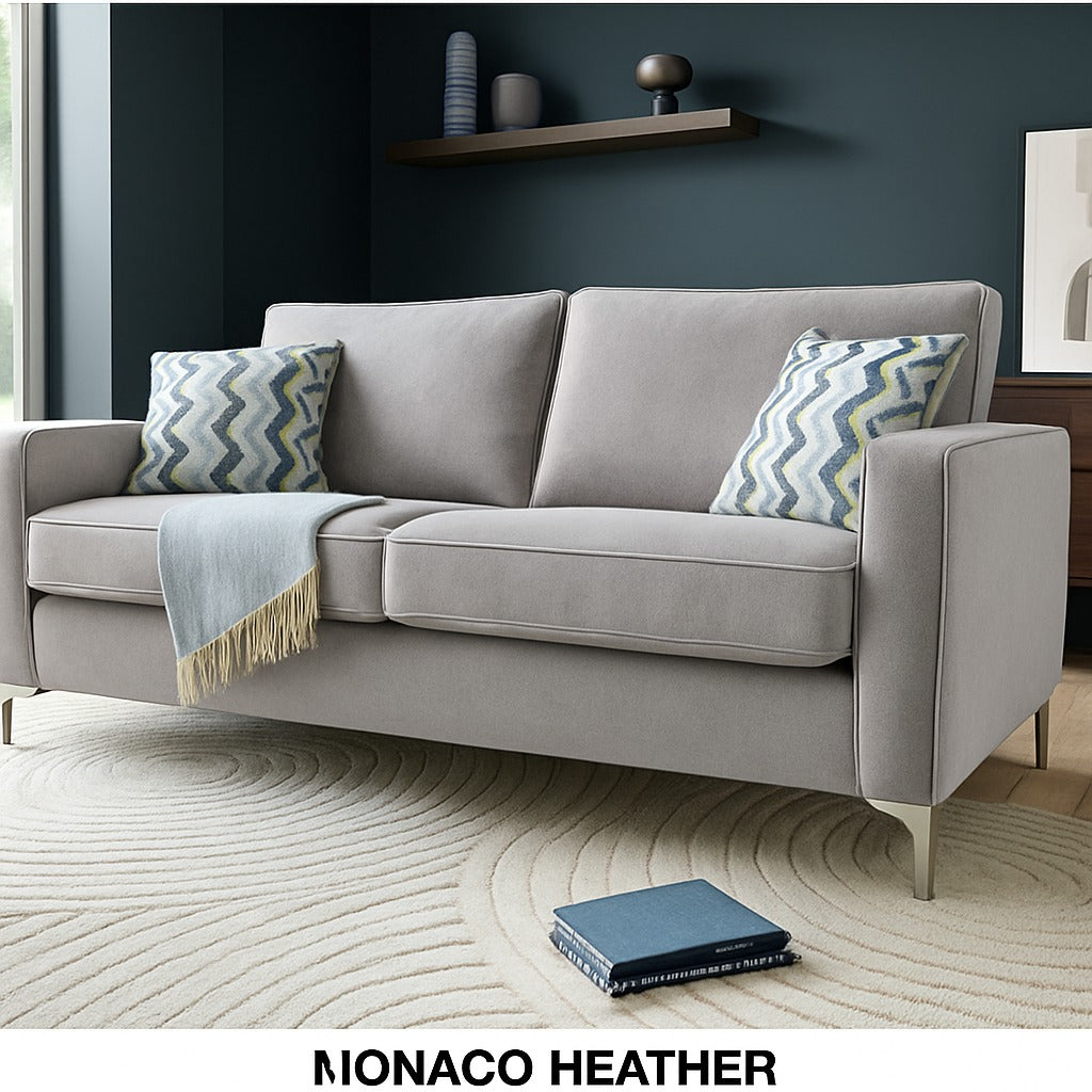 Parma Handmade 3 Seater Monaco Grey Fabric Sofa With Steel Legs