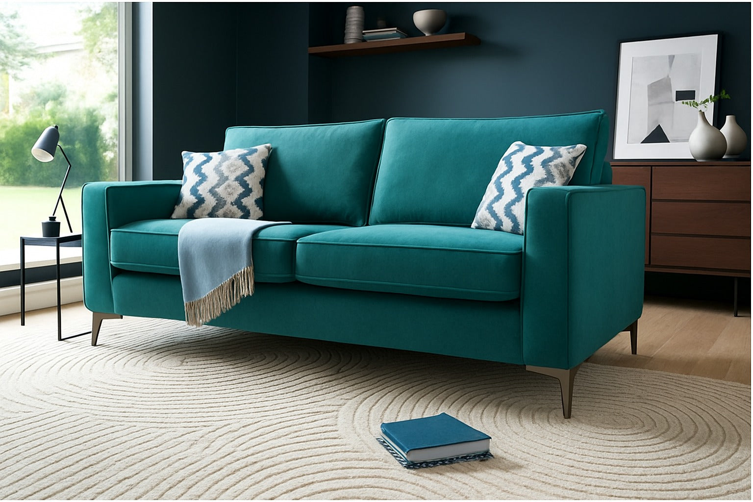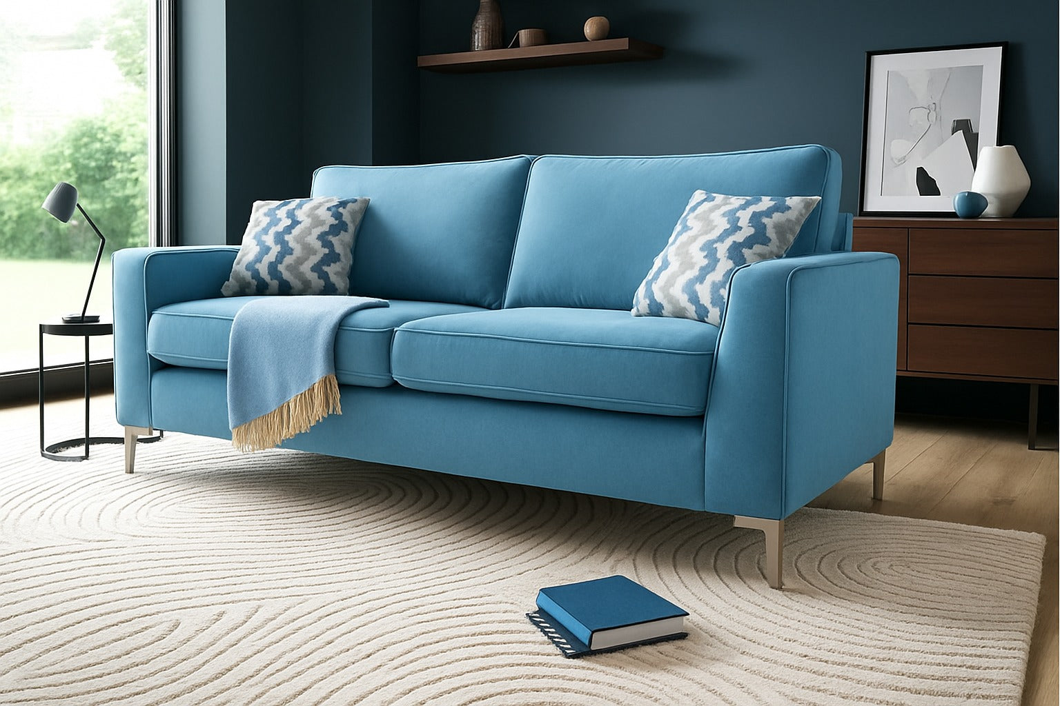 Quinn Spira 3 Seater Curved Designer Navy Blue Fabric Sofa For Elderly