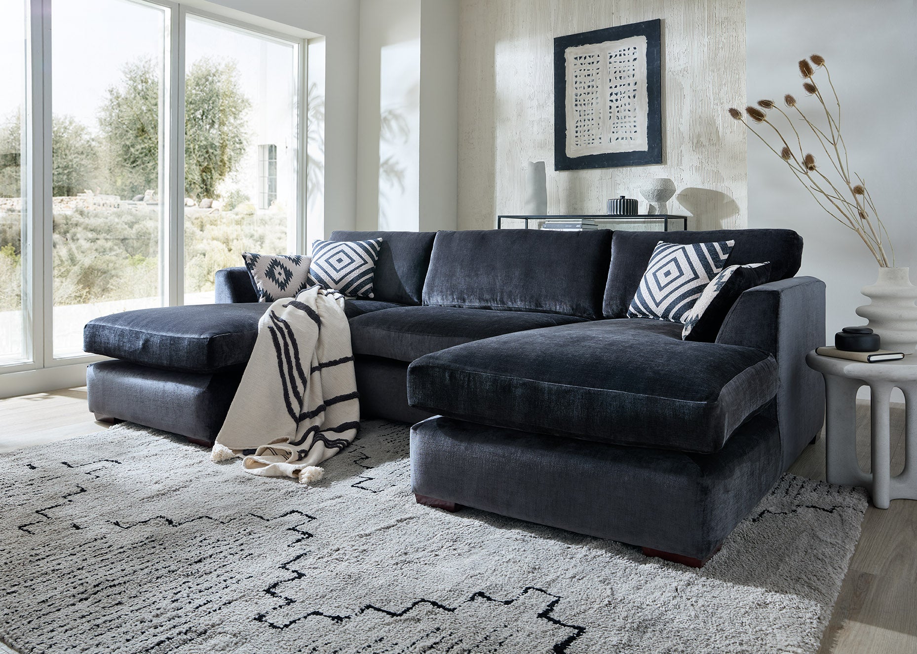 Felix U Shape Large Double Ended Chaise Fabric Cinema Sofa with Sofa Bed Option