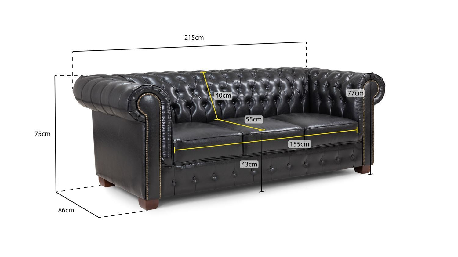 - Sofa Dimensions: Height 75 cm x Width 215 cm x Depth 86 cm