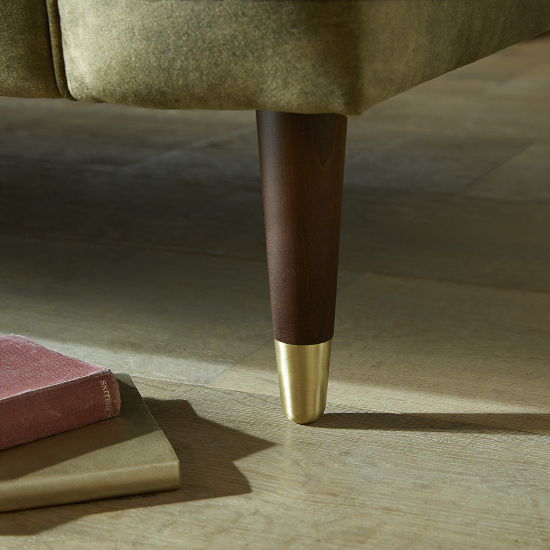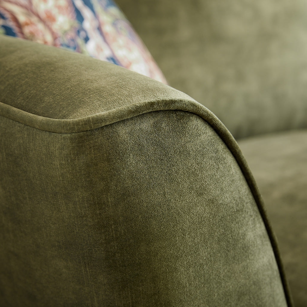 Rome Plush Dove Olive Green Fabric Sofa With Round Wooden Castor Bottom Legs For Elderly