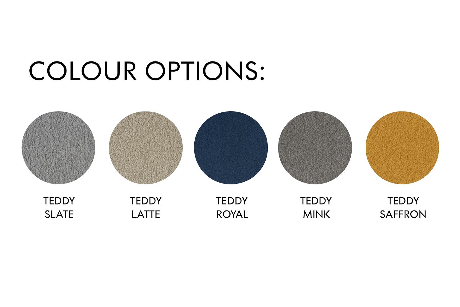 Choose from five delightful Teddy fabric shades to suit your décor:
